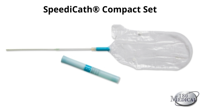 The Coloplast SpeediCath® Compact Catheter Sets are all-in-one catheter and bag sets. They are available in male and female lengths. Plus, the SpeediCath® Compact Set for men features a unique telescopic design that fits needs between 12 Fr and 18 Fr.